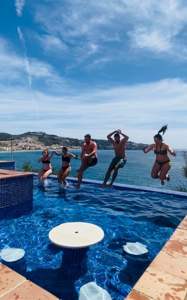 Auch außerhalb unserer Workouts verbringen wir die Zeit aktiv auf gemeinsamen Wandertour, Zeit am Pool, beim Volleyball etc.
